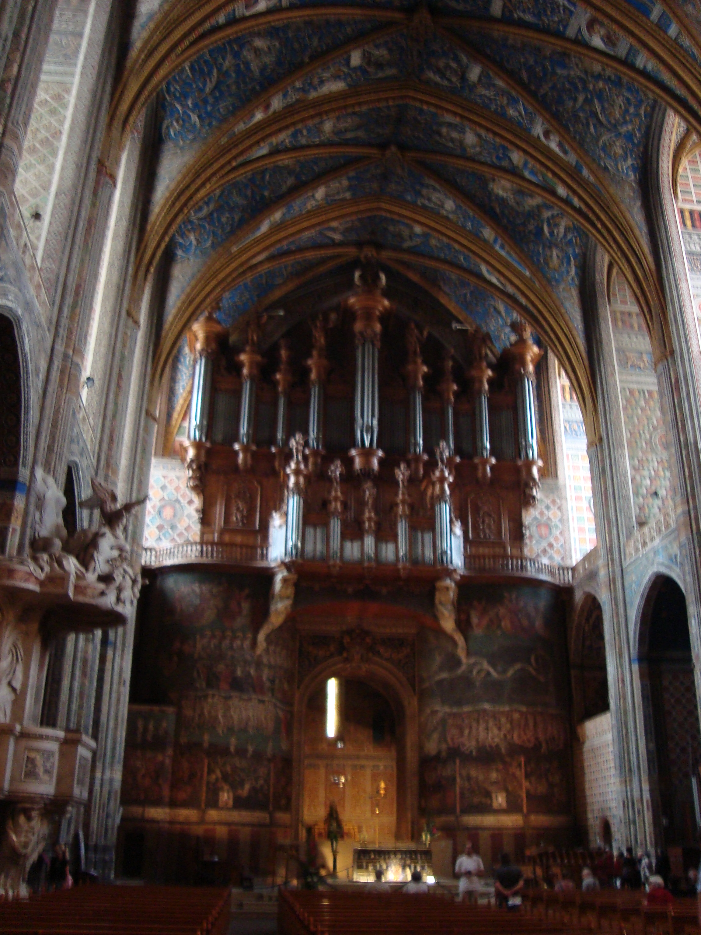 Otra particularidad es que el altar no se encuentra mirando al este sino al oeste, por un cambio de lugar para poder recibir más gente. Y sin ninguna dudas, su órgano es increíble, aún sin haberlo escuchado sonar. Dicen que es el más grande de Francia y que sólo se ve un porcentaje menor de sus tubos. Sólo me imagino el montaje durante el siglo XVIII a esa altura y me fascina. Alguien calibrándolo sonido a sonido, y siento la piel de gallina. Sobre esa misma pared está representada la obra del Juicio Final, que fue «cortada» para construir el nuevo altar. Herejes. Bueno, al menos quedaron todos sus murales. Toda la catedral, íntegramente todo, sus 18.500 m2, están pintados, incluido el techo. Como para que no te olvides, te lo dejaron todo fácil de interpretar: Dios, el infierno, los ángeles, los arcángeles y todos los señores poderosos que se merecían una pintura ahí.