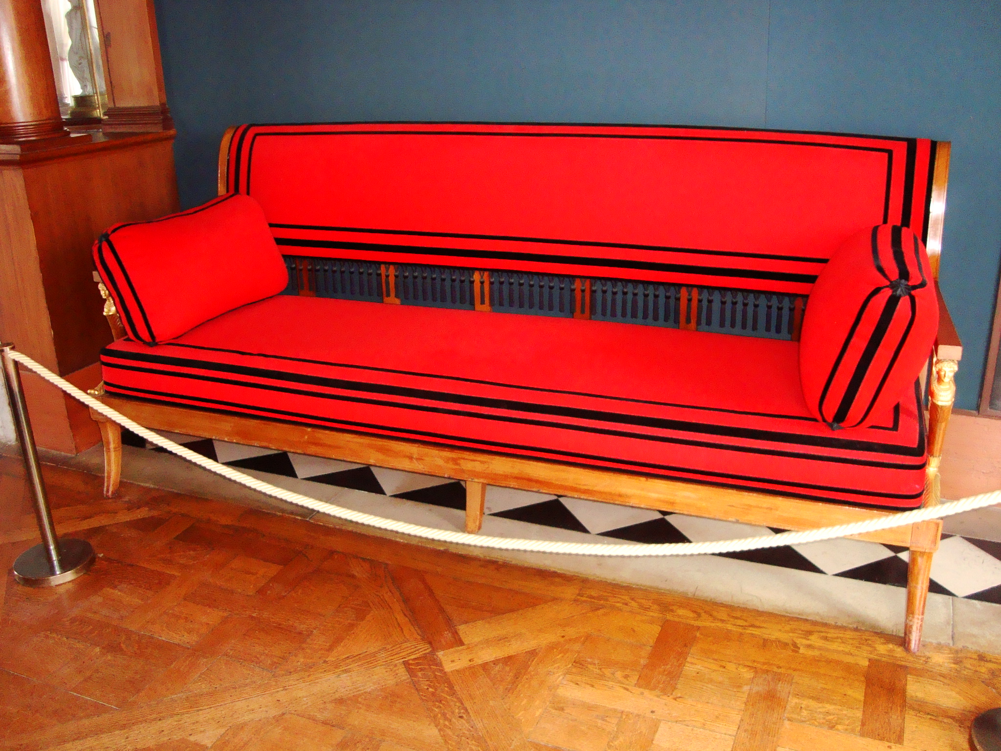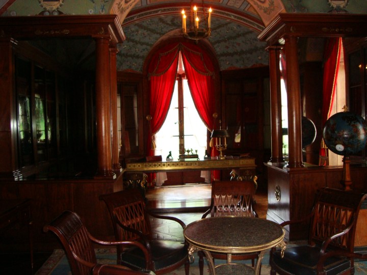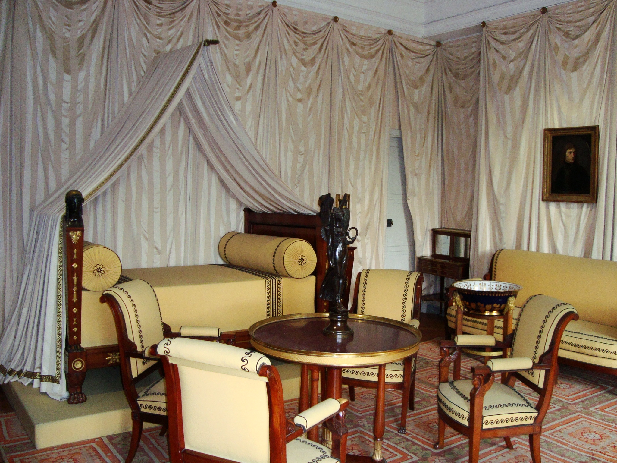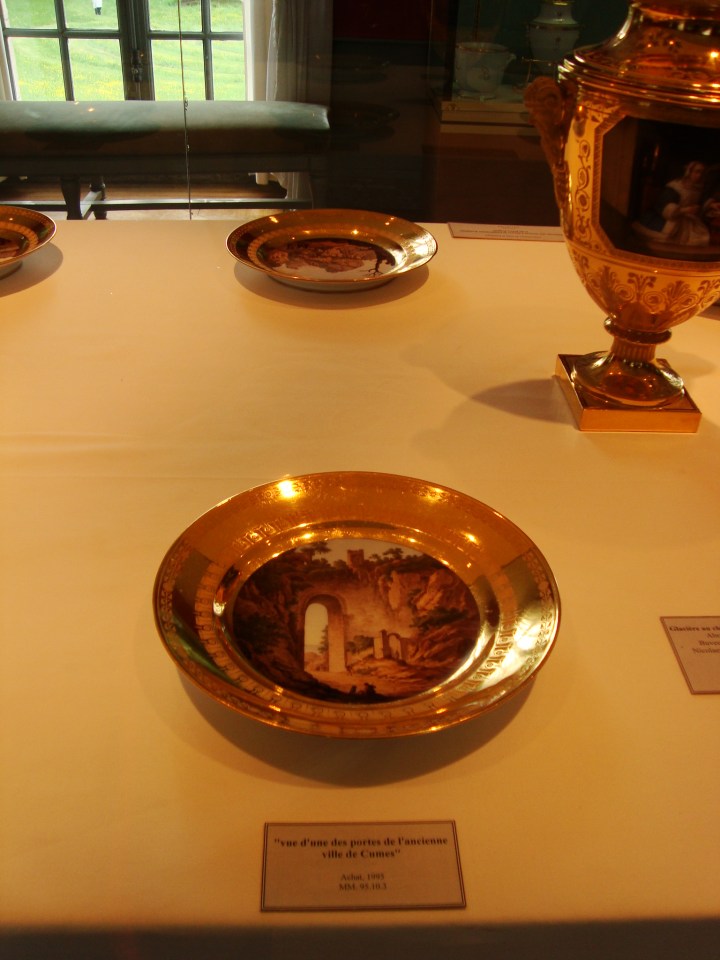 El Château cuenta con el mobiliario original, de los cuales me deslumbró el juego de platos que ilustra todos los lugares por donde estuvo Napoleón batallando, un sillón rojo muy moderno y el recinto privado de Napoleón, junto con su biblioteca, donde se habrá decidido más de una cuestión importante.
