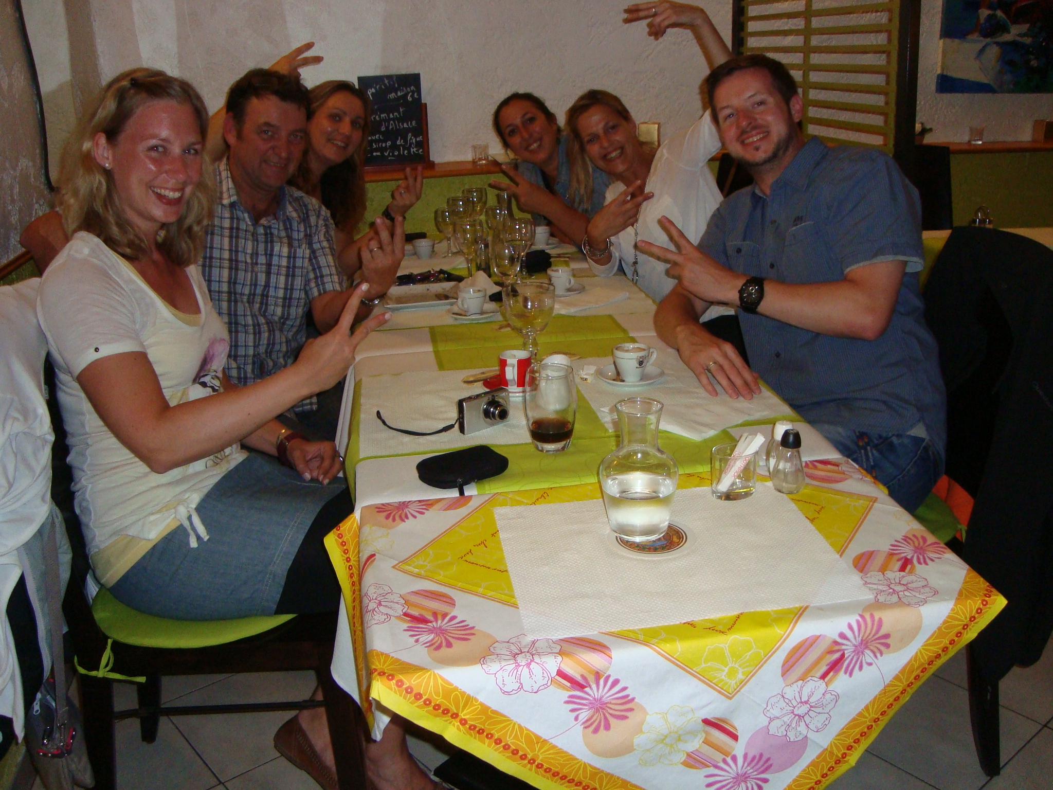 Esta parada fue una grata sorpresa. Cambió nuestros planes, los de los anfitriones y los de los otros huéspedes. Llegamos un domingo y no teníamos muchas esperanzas de hacer algo copado dado que todo suele estar cerrado, y más en un pequeño pueblo. Geoff nos ofreció cocinar spaghettis a la bolognesa, pero no hubo quorum. Una pareja joven de alemanes, Nadine y Tino, salía a cenar en un restaurant de un pueblo cercano, donde Cyndie les había reservado. Pedimos si nos reservaban también, y por último decidieron sumarse Geoff y Cyndie, acabando con la cena romántica de los alemanes. Conclusión: Geoff nos subió a todos a la camioneta y partimos a cenar juntos al pueblo de Cuers, en un restaurant mínimo atendido por sus dueños, en un pueblito cercano. Comimos unos pescados exquisitos, tomamos vino y nos reímos como hacía rato no sucedía.