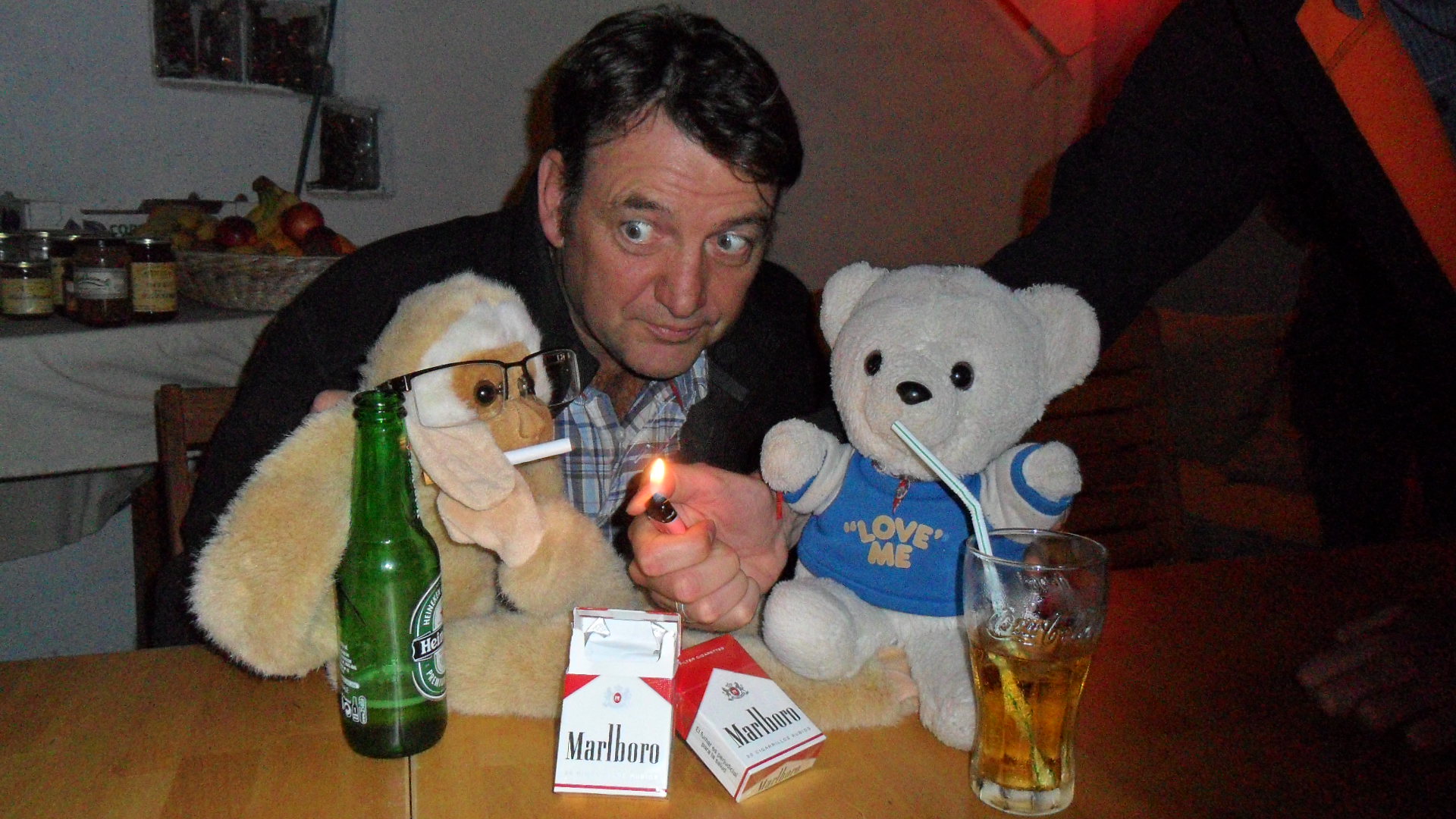 Geoff, Monkey y Martincito haciendo diabluras. Se prendieron hasta los peluches.