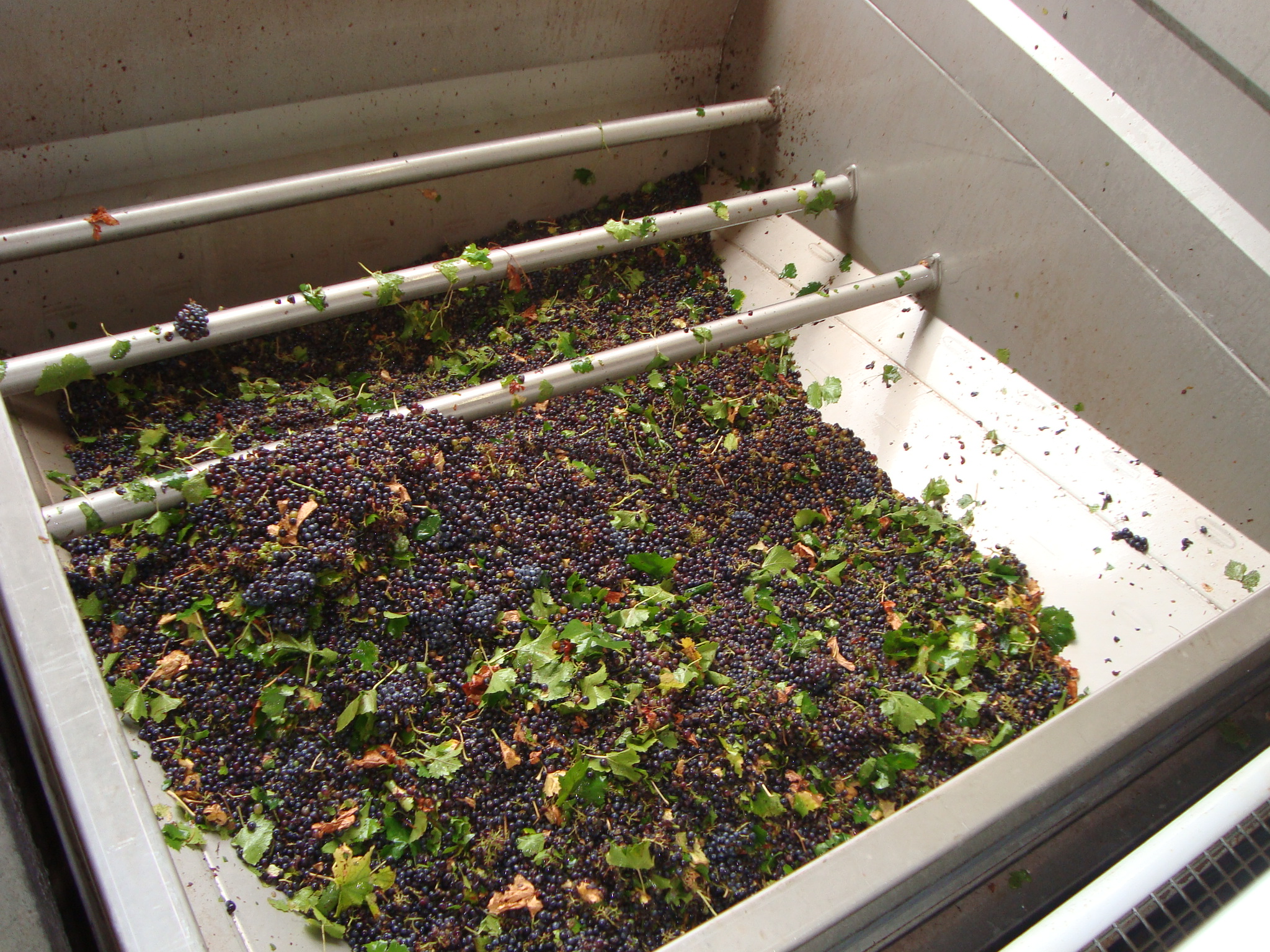Primer paso: estrujado y despalillado para separar mosto y hollejos.