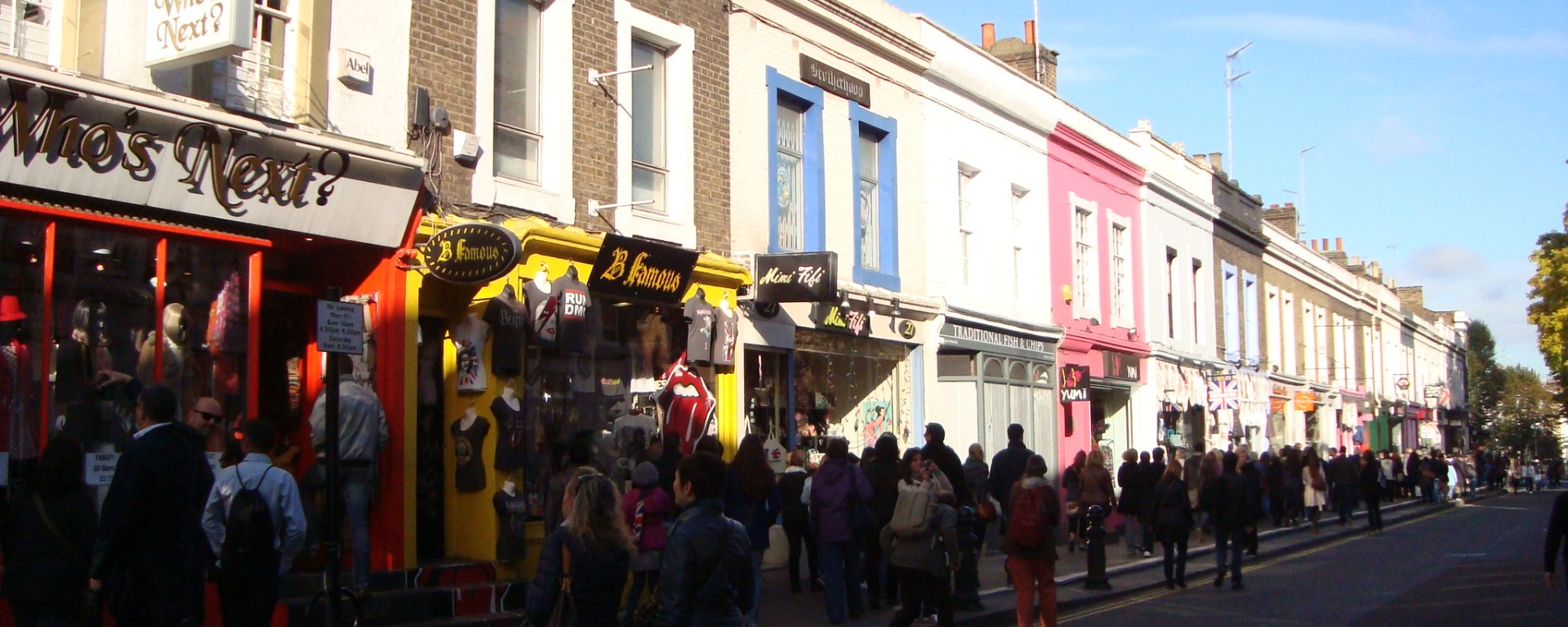 Camden Town: si buscás algo menos «tradicional» y más punk, tu lugar es éste. Mucho arte, piercings, ropa dark y vintage, puestos de comida y actividades «alternativas». Para entretenerse y perderse por calles y pasillos un rato.