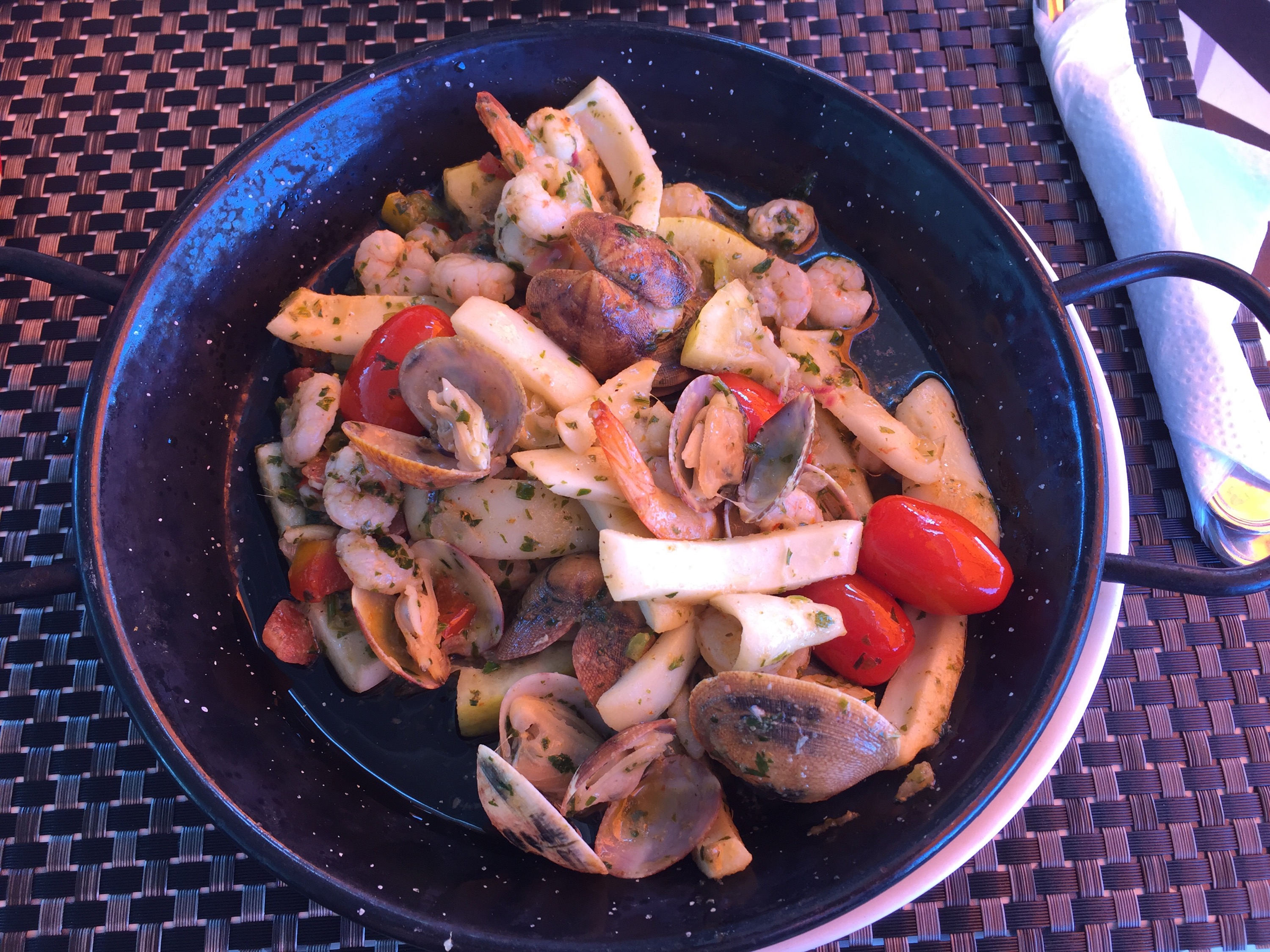 Caminamos y salimos a la costa para comer y descansar un poco en uno de los restaurantes de la costa del río Bouregreg que desemboca en el mar. Elegimos el Marina Bay y comimos unos ricos mariscos. Hay varios restaurantes y bares para elegir. En la orilla de enfrente ya tiene una parte moderna, parecida a Puerto Madero en Buenos Aires.
