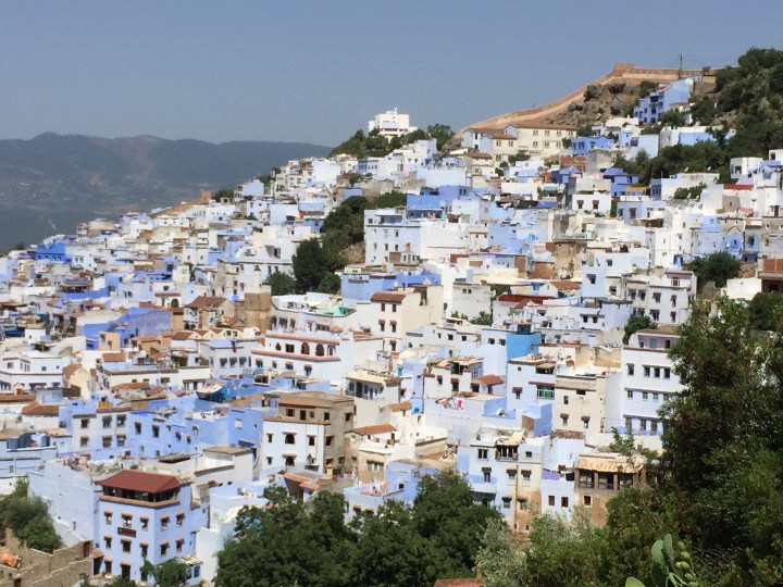 Ahhh Chefchaouen! Qué bien nos recibió! Llegamos en bus desde Casablanca una noche calurosa de julio. Chefchaouen está en el medio de las montañas. Es más, la ruta antes de llegar es bastante zigzagueante y lo primero que sorprende es descubrir este pueblito azul perdido a la distancia, recostado sobre una de las laderas de la montaña.