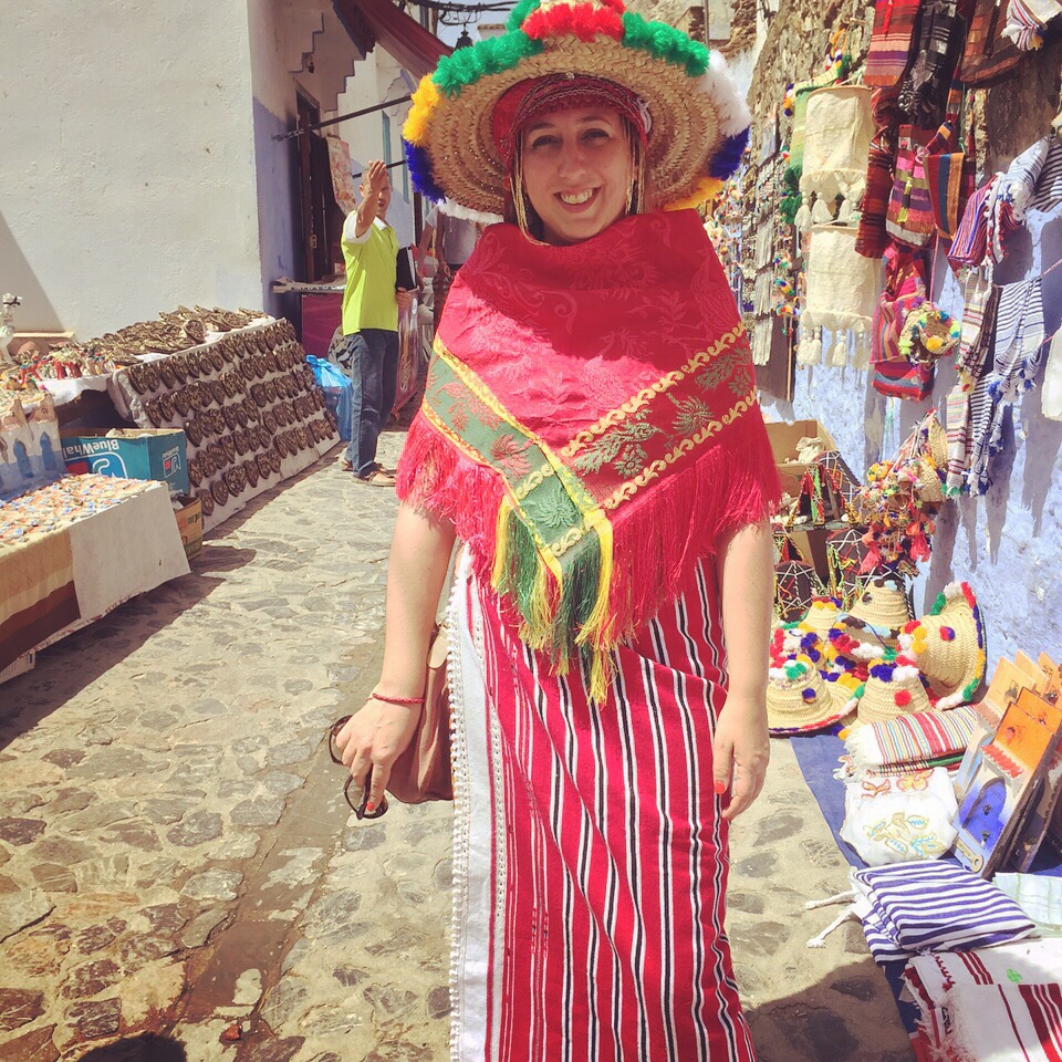De yapa, mi foto disfrazada de mujer chefchaouense. Mil grados afuera y un millón debajo. Parece que mi pedido de una foto con el sombrero al señor del puesto dio como resultado esto. Se copó y nos hizo reír un buen rato.