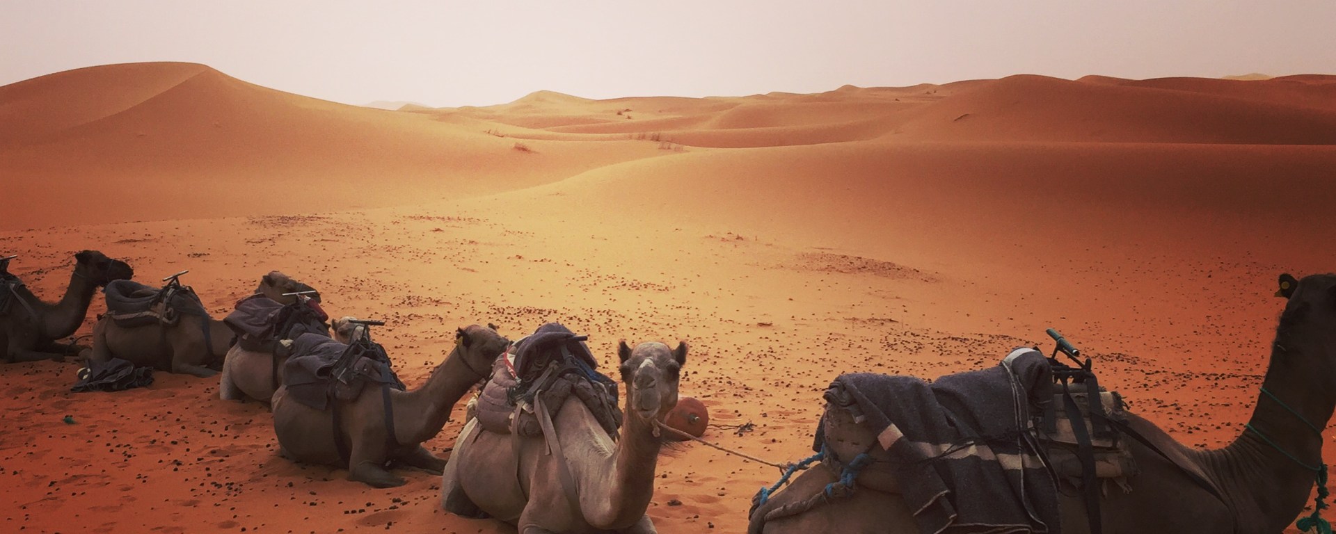 De pronto, paramos, bajamos de nuestros dromedarios y nada alrededor. Subimos la duna y ahí estaban las haimas, unas tiendas de mantas que iban a ser nuestro refugio nocturno.