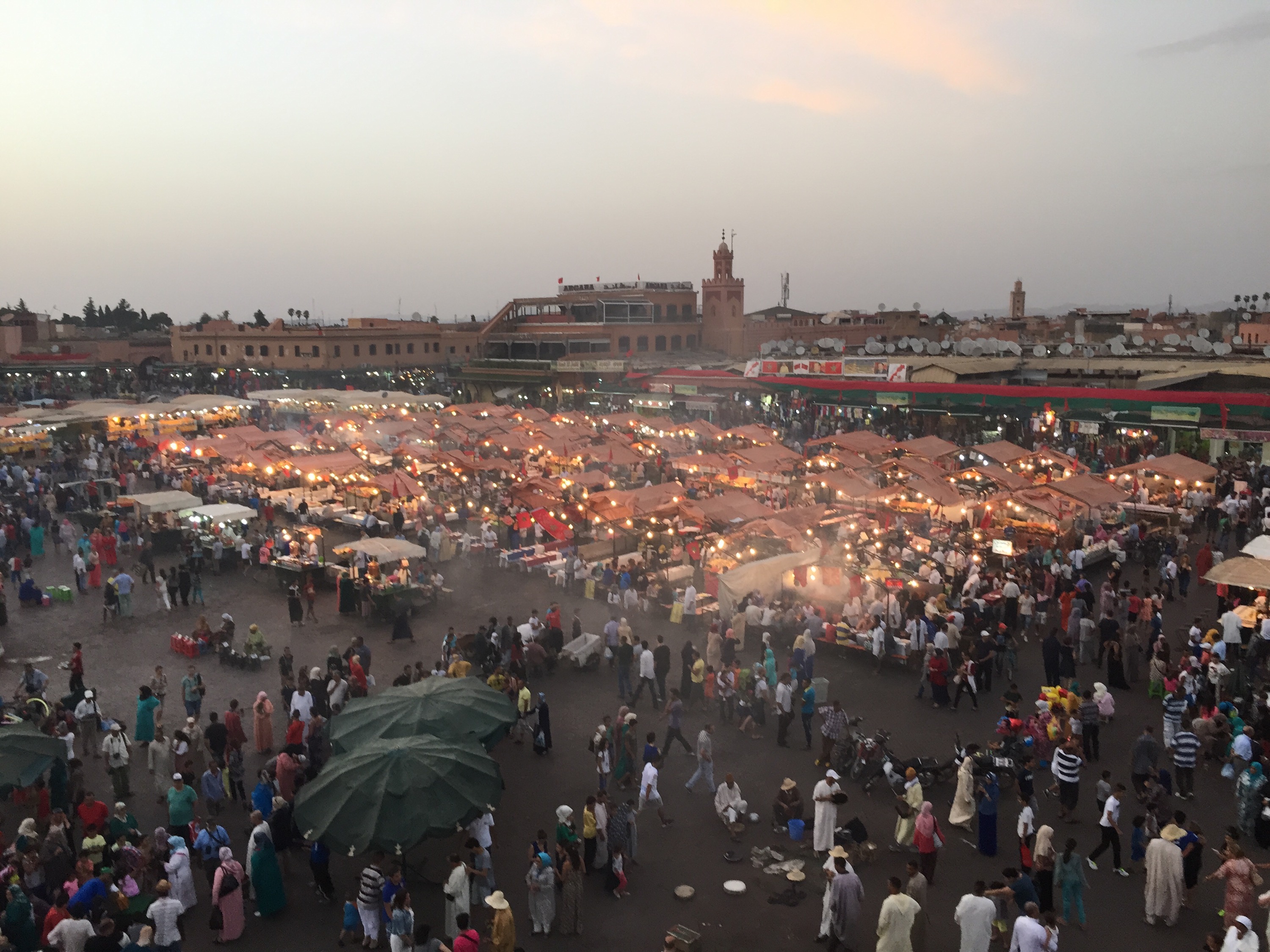 7) Contemplaste la transformación de la plaza Djema El Fna al caer el atardecer. Sentarse en una terraza a mirar y dejar pasar el tiempo no tiene precio. Es como una meditación profunda, donde todo pasa y no hay pensamientos, fluye el tiempo y se detiene, todo a la vez. Su ritmo increíble acelera el corazón y libera las emociones. Aquí me brotaron las ideas y comenzé luego a escribir como poseída, conmovida por el movimiento permanente.