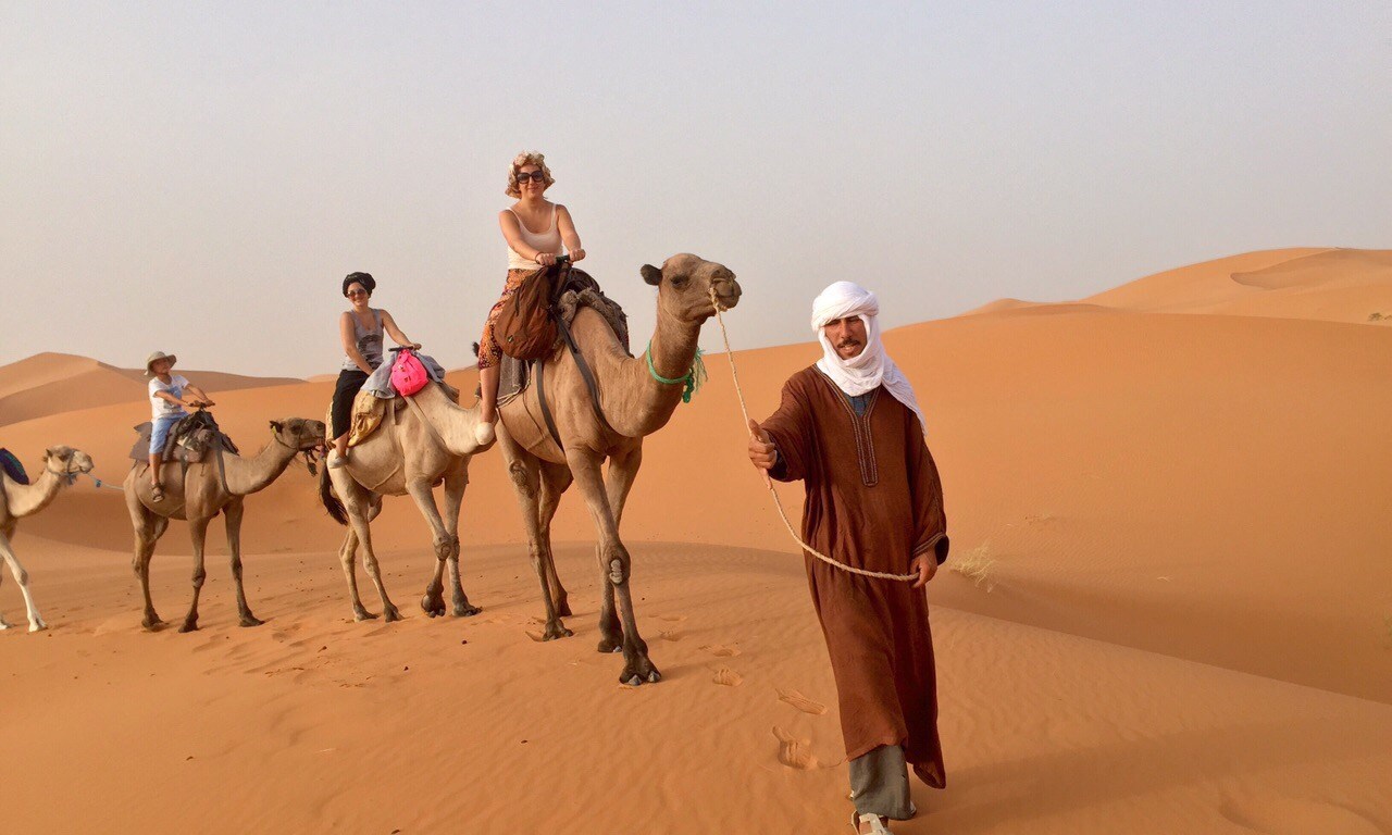 9) Anduviste en camello en el desierto. El tamborileo de sus patitas, la caravana de dromedarios, los guías beréberes con sus sonrisas y pasos tranquilos, el atardecer o amanecer sobre las dunas son imperdibles que hay que vivir.